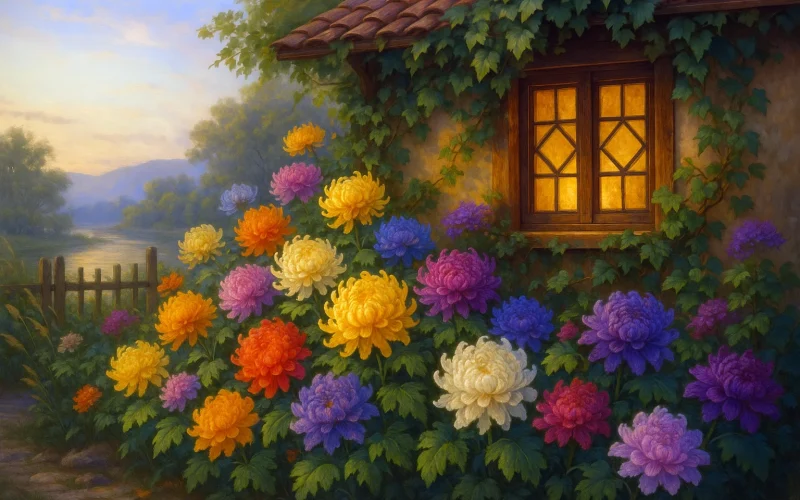 This work "Chrysanthemums" was composed by Yuan Zhen in 802 CE during the late autumn of Emperor Dezong's Zhenyuan era, inspired by chrysanthemum viewing in Chang'an. At this time, Yuan Zhen was at the dawn of his political career, yet untouched by its later tribulations. More than a pastoral vignette, the poem reflects his admiration for the flower's steadfast spirit, standing apart among Tang-era chrysanthemum odes.