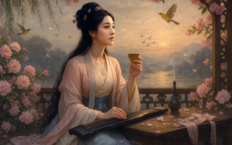 - Allusions Fused with Reason and Emotion: References to Zhuo Wenjun "hearing the zither" and the Xiang River goddess "unfastening her pendant" enhance classical elegance while concretizing and typifying emotional expression.