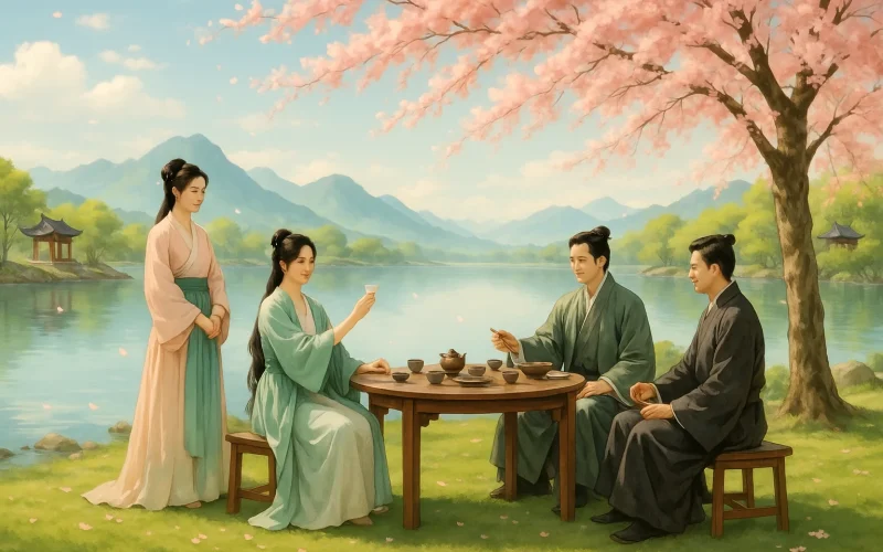 Composed during a late spring gathering in the Tang Dynasty, this poem likely captures Li Duan's festive excursion with friends along the eastern banks of the Yi River (modern-day Luoyang, Henan). Such spring outings—feasting, strolling, and reveling in nature's renewal—epitomized the lyrical rhythms of Tang literati life. Through vivid snapshots of merriment, the poet celebrates seasonal beauty while mourning its inevitable passing, weaving joy and transience into a single silk of verse.