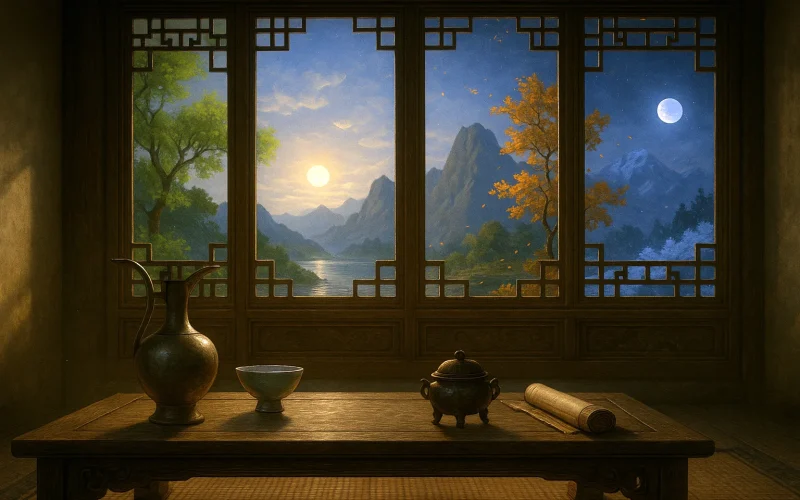 This poem was composed in 416 AD during a pivotal historical moment. Liu Yu had completed multiple military campaigns consolidating his power, and was mobilizing forces for a western expedition against the Later Qin dynasty. His unbroken chain of victories significantly strengthened his political position, granting him unprecedented authority that even the imperial court could not restrain. Though living as a recluse far removed from officialdom, Tao Yuanming remained acutely observant of national affairs. Having foreseen the Eastern Jin dynasty's inevitable collapse and Liu Yu's impending usurpation, the poet composed this series of "Drinking Wine" poems in a state of sober melancholy - recognizing both the futility of resisting natural cycles and the need to transcend worldly sorrows through wine and detachment. This first poem, likely written in autumn/winter, blends social critique with philosophical insight.