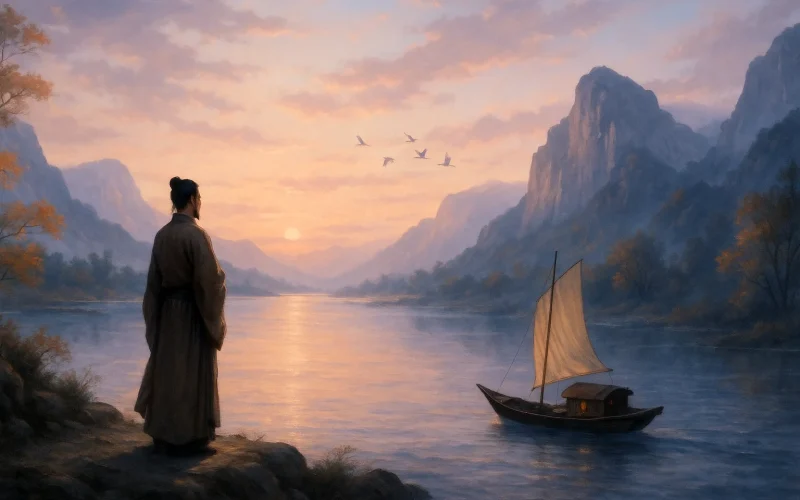 The poet transitions from the initial narration to deep longing and sorrow, finally culminating in the expression of "looking toward each other and reciting poems," which adds layers to the emotional progression of the poem. The delicate emotional depiction shows both the pain of parting and the poet's steadfast devotion to friendship. - Combination of reality and metaphor