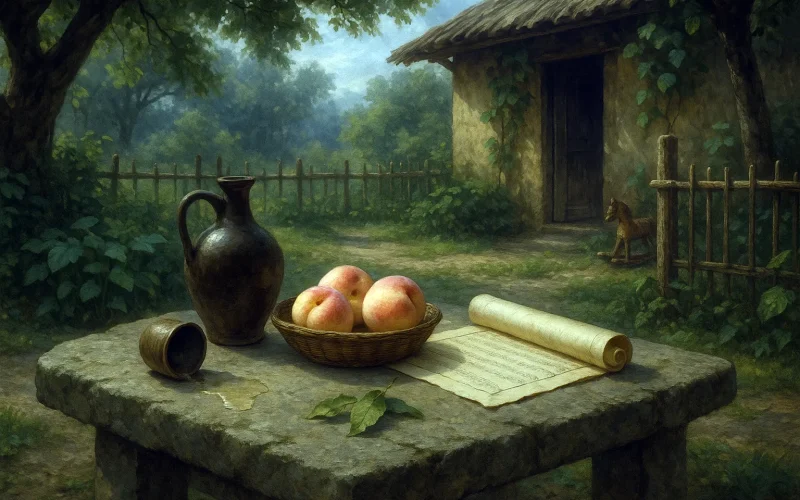 Composed in 402 AD when Tao Yuanming was thirty-eight years old, this poem was written during his leisurely stay in his hometown near Shangjing (present-day Jiujiang, Jiangxi). At this time, having achieved modest stability in life though unsuccessful in official career, and prompted by frail health and family concerns, the poet humorously documented his attempt to quit drinking in "On Quitting Wine." The entire poem revolves around the character "止" (to cease), naturally weaving daily life with the struggles of abstinence, revealing both the poet's witty personality and his profound attachment to wine amidst inner conflict.