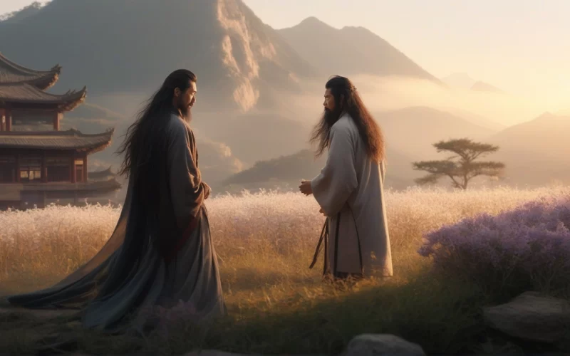 After some time, Liu Bei was ready to ask Zhuge Liang again. Guan Yu said that Zhuge Liang might have a false name and might not have real talent, so there was no need to go. Zhang Fei, however, advocated that he should go alone to call, and if he did not come, he should be tied up with a rope. Liu Bei scolded Zhang Fei and went to visit Zhuge Liang in Longzhong for the third time with both of them. He was sleeping, so Liu Bei didn't dare to disturb him, but stood until Zhuge Liang woke up, and then sat down to talk with each other.