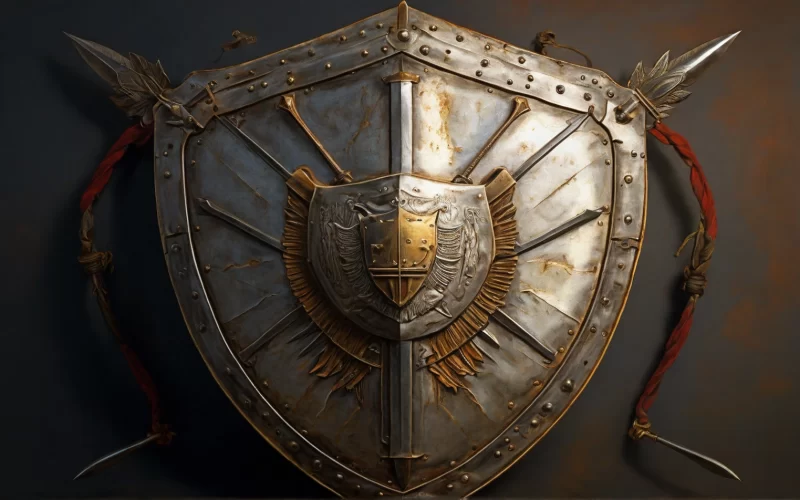 He first held up the shield in his hand and boasted to the passers-by: "Look at this shield in my hand, gentlemen, it is a good shield forged from the best materials at once. A speech that people have gathered around to look carefully.