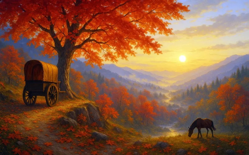 - Uso del paisaje otoñal como metáfora de la vida, con un significado profundo: En particular, la línea "las hojas escarchadas son más rojas que las flores de febrero" eleva hábilmente la belleza del paisaje otoñal a una reflexión filosófica sobre las circunstancias de la vida, mostrando el estado de ánimo positivo y optimista del poeta.