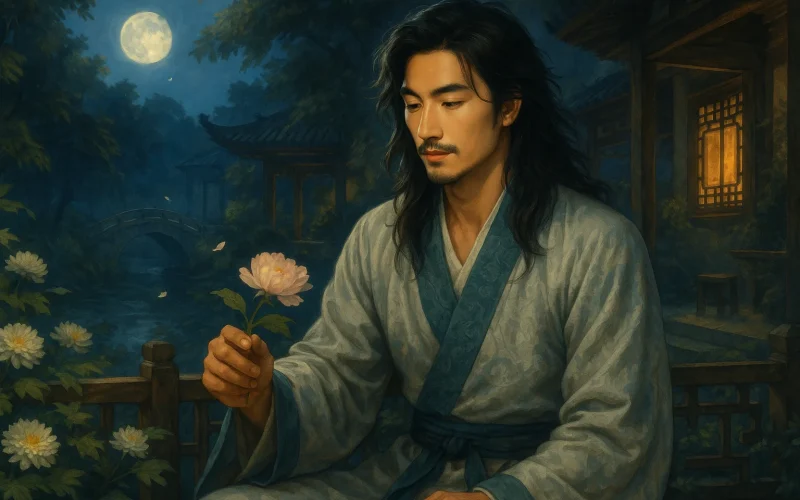 La segunda estrofa evoca el pasado, vinculando «las noticias fragantes de Luoyang»y «la peonía Yáohuáng»con personas y eventos, símbolos de esplendor y afecto que representan el consuelo espiritual del poeta. Sin embargo, «los sentimientos quedaron sin desplegarse»implica que esa conexión fue interrumpida o quedó inconclusa. El verso final, «nadie me cuida», abrupto y poderoso, enfrenta crudamente la soledad y las dificultades actuales, transformando el tono de refinada melancolía en un dolor intenso, dejando un eco perdurable.