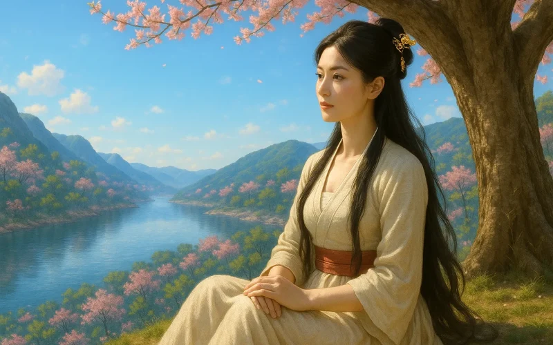 Leyendo los poemas de Yuan Zhen en un barco