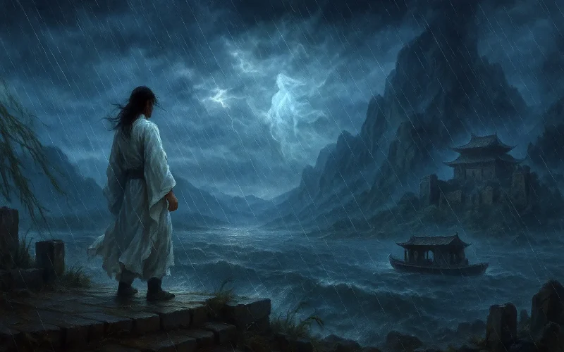 Cette ouverture narrative, bien que simple, recèle une intention profonde. « Errant » jusqu'aux rives du mont Wu est une arrivée physique ; « gravir » la terrasse solaire est une quête spirituelle délibérée. Le mont Wu et la terrasse solaire, liés à la légende de Song Yu, sont depuis longtemps des symboles culturels de romance et de désillusion. Le geste de Li Bai n'est pas une simple visite, mais un rituel de dialogue actif avec l'histoire, établissant le ton d'une méditation nostalgique et critique, ouvrant la voie à l'expression des soucis patriotiques et du sentiment de vanité.