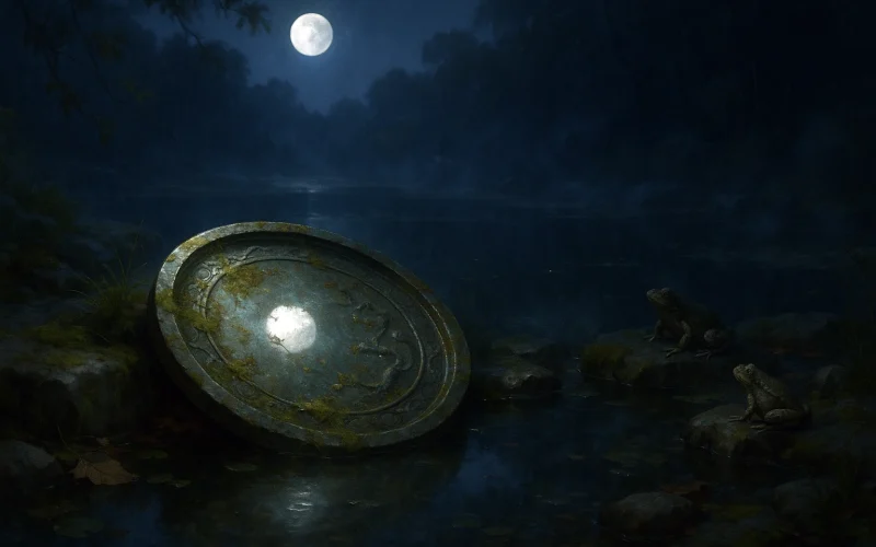 Premier couplet : « 莓苔翳清池,虾蟆蚀明月。 »