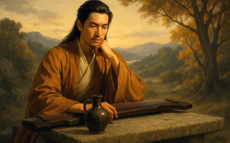 Le soupir dans le poème nous invite aussi à réfléchir au sens de l’ami intime. La poésie de Liǔ Zōngyuán, seule un xié lǜ zhě (celui qui accorde la mélodie) peut y répondre, la faire résonner ; sans ami intime, la plus belle corde ne peut que résonner seule, yǎo miǎo (mystérieuse et lointaine). C’est à la fois le regret de l’adieu à Wú Wǔlíng qui retourne au Nord, et une perspicacité profonde sur la condition de tout créateur – le véritable art a besoin de l’écoute d’amis intimes. Aujourd’hui, lorsque nous écrivons, créons, nous exprimons, ne cherchons-nous pas aussi ceux qui peuvent xié lǜ (accorder la mélodie) ? Ne soupirons-nous pas aussi pour wú xié lǜ zhě (l’absence de celui qui accorde la mélodie) ?