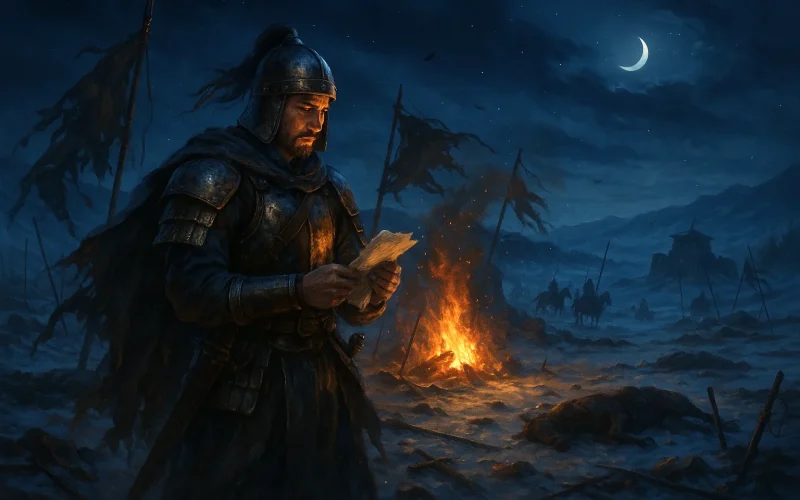 Ce poème, à travers un combat nocturne et une lettre de famille, parle d'un thème intemporel et immuable – La cruauté de la guerre ne réside pas dans les cadavres jonchant le champ de bataille, mais dans ces lettres de famille qui n'attendent jamais de réponse, dans ces vêtements chauds qui n'arriveront jamais dans les mains attendues.