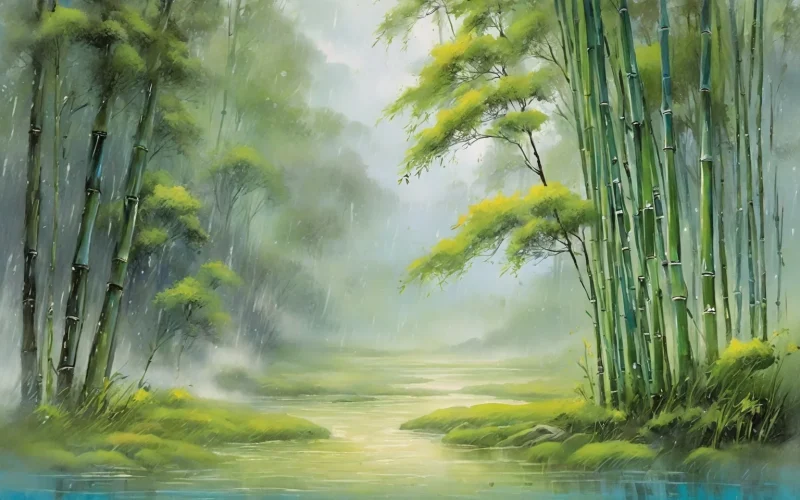 Pluies, vents et pousses de bambou deviennent les vecteurs des sentiments du poète, fusionnant description objective et état subjectif. - L'universel dans le particulier