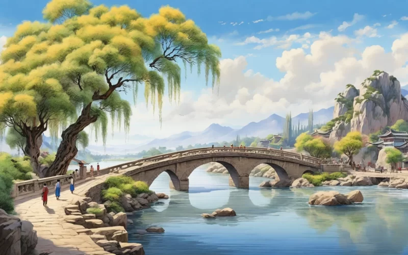 Le dernier vers, "Et laissons les regrets de séparation se délier comme ses branches", est le trait le plus artistique du poème. Le poète matérialise l'abstraction des "regrets de séparation" en fragments émotionnels semblables à des "branches de saule", suspendues une à une au cœur de l'homme, mêlant mouvement et immobilité, émotion et paysage. Les mots "laissons-les" (任他, rèn tā) sont particulièrement évocateurs, véhiculant un flux émotionnel profond et résigné, comme si le poète, debout sur le pont, regardait en silence son ami s'éloigner, incapable d'exprimer les sentiments complexes qui l'habitent, les laissant se balancer au vent comme des branches de saule.