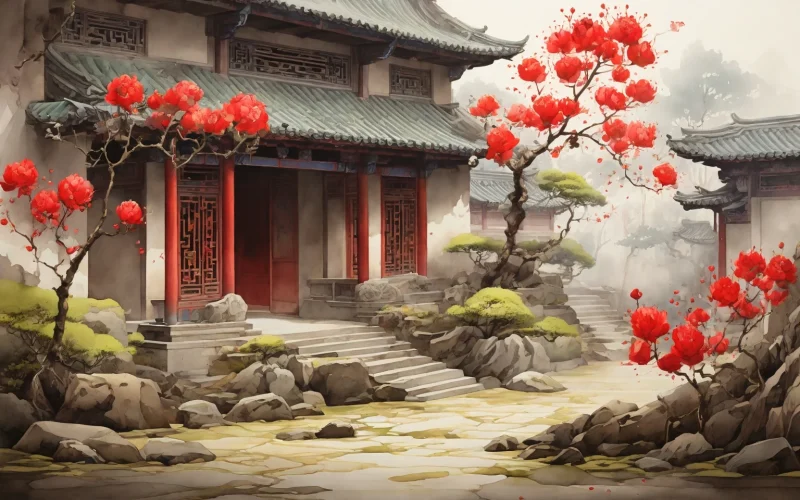 Deuxièmement, l'image solitaire de « 颠倒青苔落绛英 » nous amène à réfléchir à la différence entre « être vu » et « être compris ». Ces pétales tombés sur la mousse verte sont aussi une forme de beauté, mais cette beauté nécessite un cœur attentif pour être découverte. La cour de Zhāng Shǔ peut-être n'a pas d'attelages, mais elle a Hán Yù comme ami intime ; les fleurs de grenadier peuvent-être n'ont pas de foule de spectateurs, mais elles sont entrées dans le poème du poète, transmises à travers les siècles. Il nous rappelle : les vrais amis intimes ne se comptent pas en nombre, mais en profondeur de compréhension. Plutôt que de désirer être au centre de tous les regards, il vaut mieux chérir cette ou ces deux personnes capables de percevoir la beauté de vos « 落绛英 ».