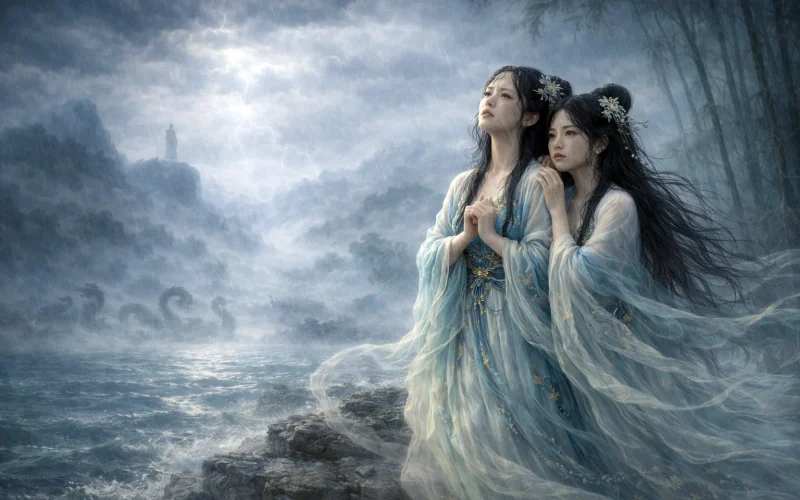 Yuǎn biélí, gǔ yǒu huáng yīng zhī èr nǚ, nǎi zài dòngtíng zhī nán, xiāoxiāng zhī pǔ. Hǎishuǐ zhí xià wàn lǐ shēn, shuí rén bù yán cǐ lí kǔ?