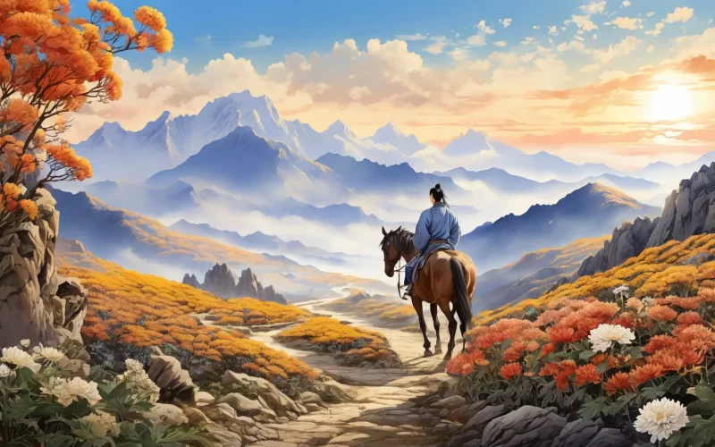 全诗由“村行”而起,由“思乡”而结,写景细致,抒情含蓄。诗人一路策马徐行,以信手拈来的笔触描绘秋日山野之美,黄菊、风壑、斜阳、红叶、白花,一幅幅画面层层递进,既有色彩,又具声律。尤为可贵的是,诗中写景不为写景,而是借景抒情,景中含情、情中有景,最终落点在“似吾乡”的一点乡愁上,使诗意含蓄悠远,令人回味无穷。