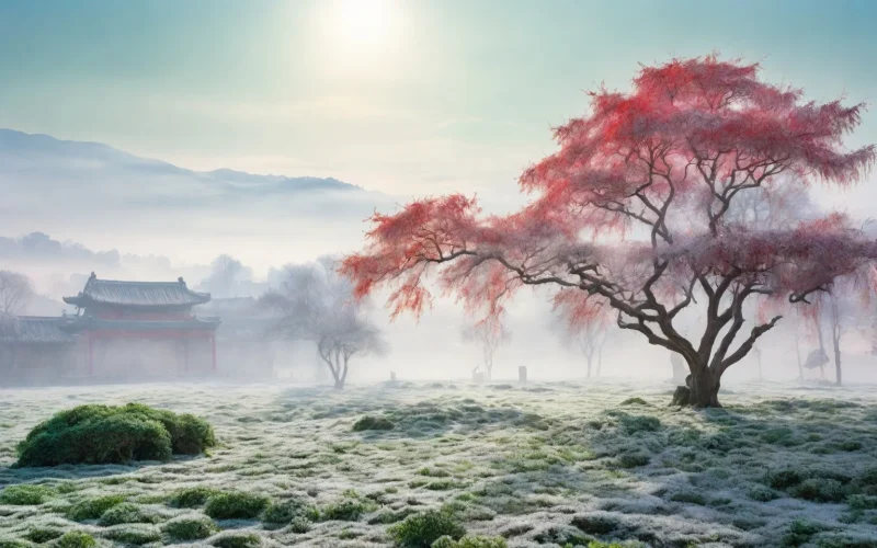 李贺巧妙地通过桃花落下的场景,象征时间的流逝与青春的消逝。“桃花乱落如红雨”这一画面不仅是自然景象的呈现,也承载了诗人对生命短暂、青春易逝的感慨。在这场盛宴的热烈背后,隐含着对时间无情流逝的恐惧和无奈。 - 戏剧性的转折与反差