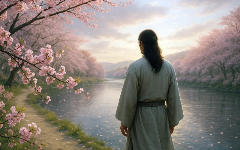 江边的繁花让我烦恼不已,却无人诉说,只好在花丛间徘徊、发疯似地乱走。