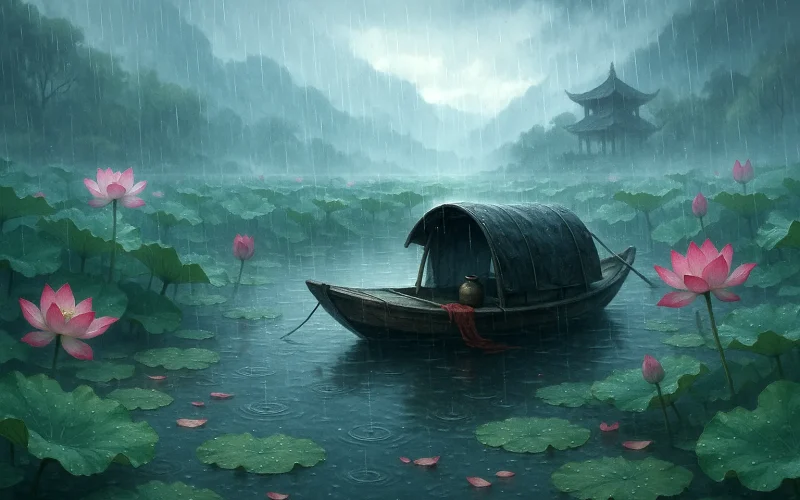这首词作于南宋淳熙十六年(1189年)左右,时姜夔客居武陵(今湖南常德),正值盛夏之际,词人泛舟荷塘之上,感物咏怀,抒发自己与荷花之间灵犀相通的深情。词中融合了杭州西湖、吴兴(今湖州)等地赏荷记忆,宛如一次跨越时空的心灵旅程。荷花自古被喻为“出淤泥而不染”,而在姜夔笔下,不仅象征着高洁,更寄托了词人孤洁自赏、才情寂寞的性情。他通过与荷花为伴的场景描写,写出一位文人孤游异乡、清冷自持、才情欲放却无人知的情境。