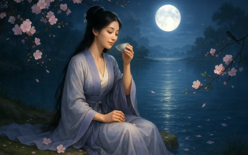 此段写景兼发问,引人入境。“海棠乱发”一句既写出花繁枝茂,也暗含一种柔婉的动态之美。“君知”设问,不仅起到过渡作用,更增强了词的抒情意味。月光清冷,白光如雪,香风徐来,诗人以视觉与嗅觉交织,营造出一个安静而富有韵致的夜晚场景。此处景中带情,花、月、香俱是自然之美的化身,也是词人心境的映照。