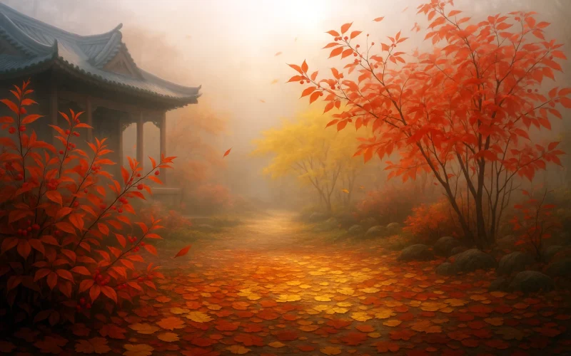 - 象征入诗,转化巧妙:以“茱萸红实似繁花”一语化用重阳节俗,同时将秋实比作春花,形成时间与情感的双重象征,使诗意超越时令之限。
