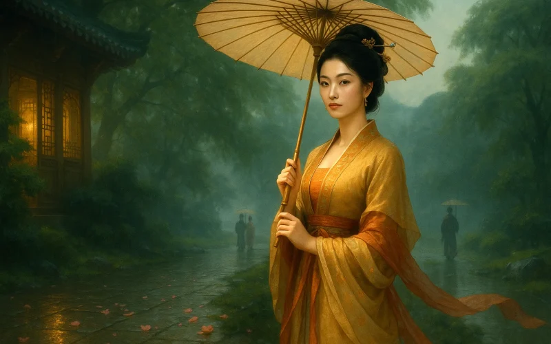 起首“雨打江南树”写的是春日绵雨,非摧花之风雨,而是润物无声、催花而开的甘霖。承接一句“一夜花开无数”,正是写这“好雨”带来的春之繁盛,也隐隐呼应杜甫“润物细无声”之句。第三句转入暮春景象——“绿叶渐成阴”,由花转叶,从开到盛再至衰,展现春色已临暮境。“下有游人归路”,一语极妙,既写出踏春之人已归,暗示春游将尽,也通过“归路”象征季节转折。四句虽皆写景,却含惜春之情于不言之中。