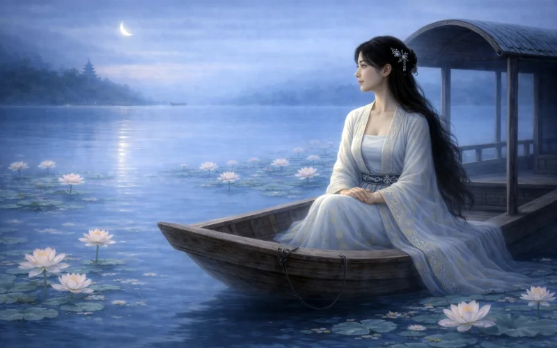 开篇以“红藕香残”描绘户外景色,“玉簟秋”则点染室内氛围,展现出秋日清冷的气息,衬托离愁别绪。“轻解罗裳,独上兰舟”表面写词人泛舟之举,实则暗示其内心的孤寂。“云中谁寄锦书来”直抒思念之情,而“雁字回时,月满西楼”则以鸿雁传书的传统意象,表现对远方爱人的深切期盼。“月满西楼”不仅呼应开头的景象,还通过空间层次的铺展,展现词人长时间伫立凝望的深情与执着。