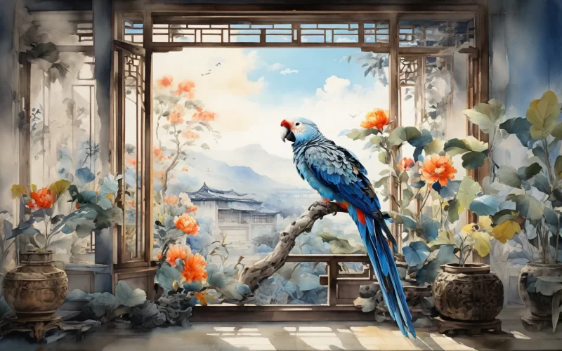 这首诗作于唐末五代之际,社会动荡不安,诗人罗隐一生坎坷,多次应试不中,壮志难酬。年老后他投靠吴越王钱镠,虽得安身,却郁郁不得志。此诗借咏鹦鹉之口,寄托了自己身处异地、寄人篱下的心境与忧思,是一首典型的托物言志之作。