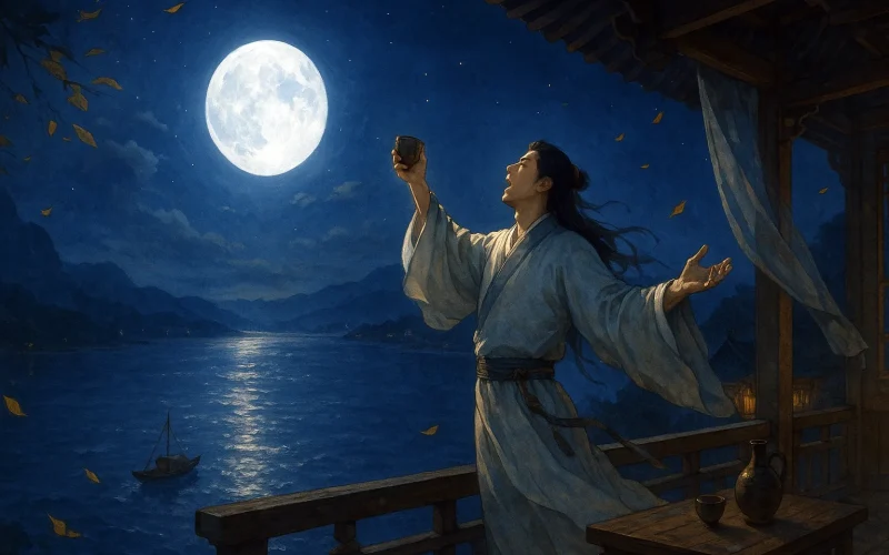 人生如客,漂泊江湖,在江海之间相逢,总有说不尽的离愁与旧恨。秋风起时,黄叶纷飞,洞庭湖水波光粼粼,更添旅人孤寂。