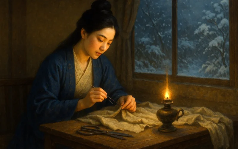 这首诗是李白《子夜四时歌》四首中的冬歌,继承了南朝乐府民歌的传统,却注入了更为深沉的家国关怀与精湛的诗歌技艺。它截取了一个极具戏剧性的生活片段——思妇寒夜赶制征衣,通过一系列精微的细节,将个体的儿女情长与时代的战争背景紧密相连,展现了李白诗歌“以小见大”的非凡功力。